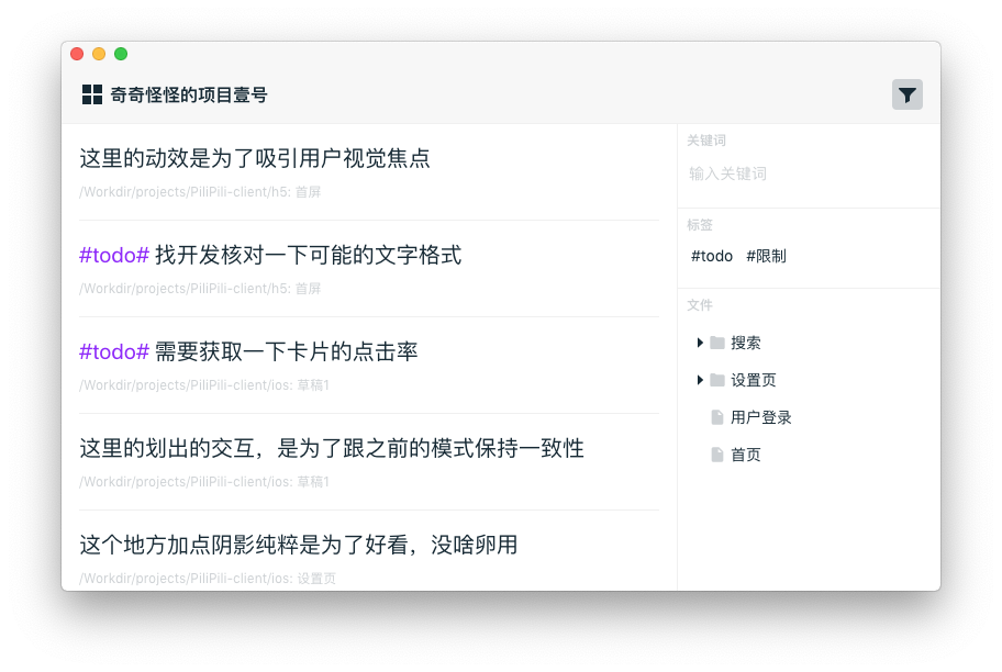 Design Comment 能实时检索整个项目里的所有设计稿文件内特定格式的注释,让你不用在一堆文件中挨个打开查找。